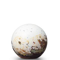 Wij bieden u de Elegance Line, met bijzondere urnen van geblazen kristalglas. De handgemaakte urnen zijn elk uniek van kleur; olijfgroen met bruin en wit, verrijkt met bladgoud. Alle producten uit deze lijn die speciaal voor ons is gemaakt, zijn in verschillende maten en geschikt voor binnen en buiten. De kristalglazen urnen zijn in twee modellen verkrijgbaar, namelijk een ronde bol en platte bol.